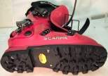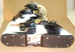 テレマークのつま先には3つ穴金具が埋めこみあり。 |